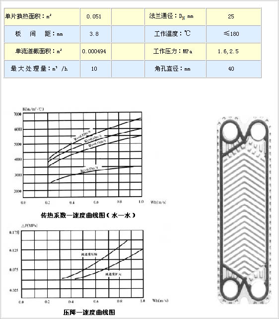 BR0.05型板式换热器可耐各种腐蚀介质,传热效率高,冷热介质通过相邻板片流经各自通道进行换热。由于板片上有人字形波纹,介质流动形成湍流, 因此获得较高的换热效率。高效节能,传热系数高。其换热系数可达3000-4500kcal/m2.゜C.h.是相同流速下管壳式换热器的3倍以上。使用安全可靠,结构紧凑,体积小,占地少,是同等换热面积管壳式换热器的五分之一左右。