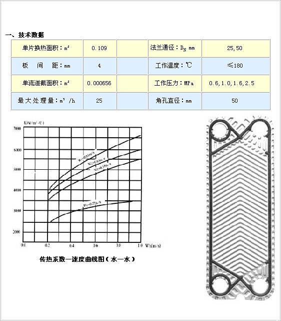 BR0.10型板式换热器可耐各种腐蚀介质,传热效率高,冷热介质通过相邻板片流经各自通道进行换热。由于板片上有人字形波纹,介质流动形成湍流, 因此获得较高的换热效率。高效节能,传热系数高。其换热系数可达3000-4500kcal/m2.゜C.h.是相同流速下管壳式换热器的3倍以上。使用安全可靠,结构紧凑,体积小,占地少,是同等换热面积管壳式换热器的五分之一左右。